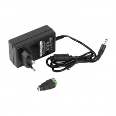 12 В, 2 А. U-вх.110...245 В; сетевая вилка, штекер 5.5х2.1 мм, переходник на клеммы в комплекте; IP2..