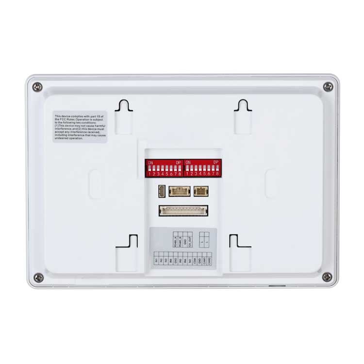 Монитор видеодомофона 7 дюймовый с WiFi 2.4ГГц, возможность просмотра HDCVi камер, белый, 1024x600 разрешение, ёмкостной сенсорный экран; тревожные входы / выходы 6/1; SD карта памяти до 64Гб; Питание: через 2-проводной контроллер; Выход питания: 12В, 200мА; Габаритные размеры: 130 мм × 189 мм × 23.9 мм; Установка на стену.