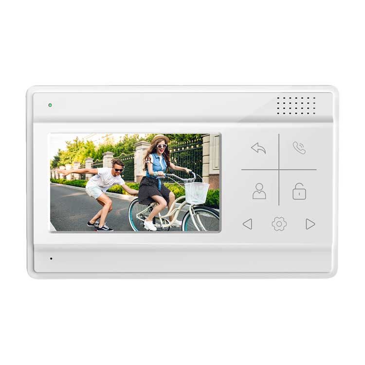 "Видеодомофон: дисплей 4,3"" TFT; сенсорные кнопки; подключение до 2-х вызывных панелей; OSD меню; питание AC 220В (встроенный БП)