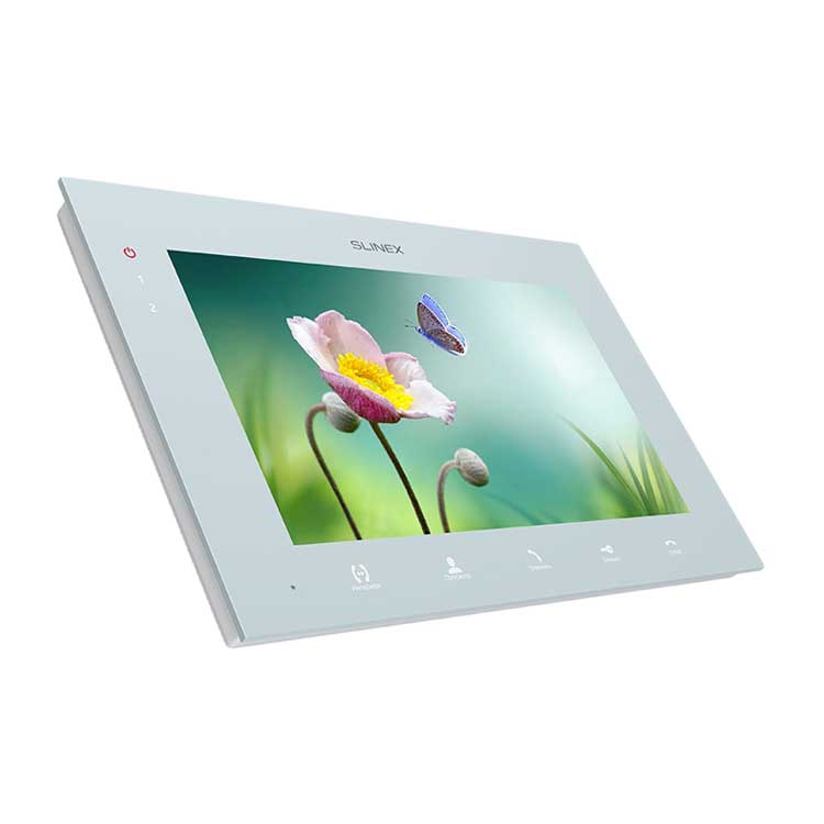 Цветной, настенный, 7" сенсорный TFT LCD дисплей 16:9, разрешение экрана 1024х600. Подключение 2-х панелей и 2-х камер любого из стандартов: AHD/CVBS/TVI/CVI. Запись фото или видео на microSD карту до 64 ГБ. Программная или аппаратная детекция движения. Интерком до 4-х домофонов: SL-10IP, SL-10IPT, SL-10M, SL-10, SL-07IP, SL-07M, SL-07, SQ-07MT, SQ-07M, SQ-07, SM-07M, SQ-04M, MS-04, SM-04M (SL-07IP, SL-10IP и SL-10IPT могут быть только основными при соединении в интеркоме). MP3 мелодии вызова, три временных режима уровня громкости, режим "не беспокоить", отображение часов в режиме ожидания, фоторамка. Потребляемая мощность – до 10 Вт, питание: ~100-240 В или +13,5 В. Размер: 197х127х19 мм. Цветовые решения: белый/черный. Рекомендуется использовать с ML-20HD.