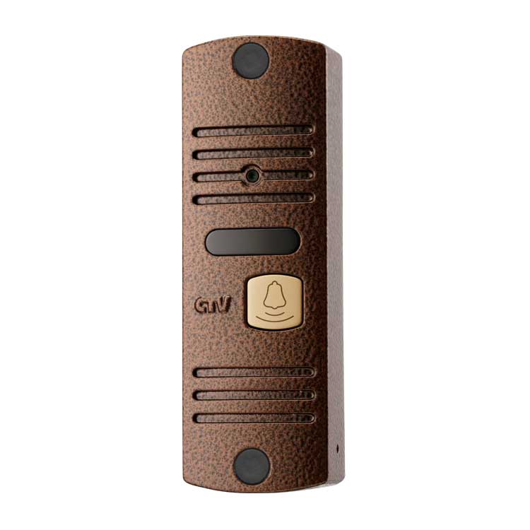 Вызывная панель для видеодомофона, компактный корпус, подсветка кнопки вызова цв. "гавана"/серебро/бронза, коммутация - разъём, монтаж. уголок и козырек в комплекте