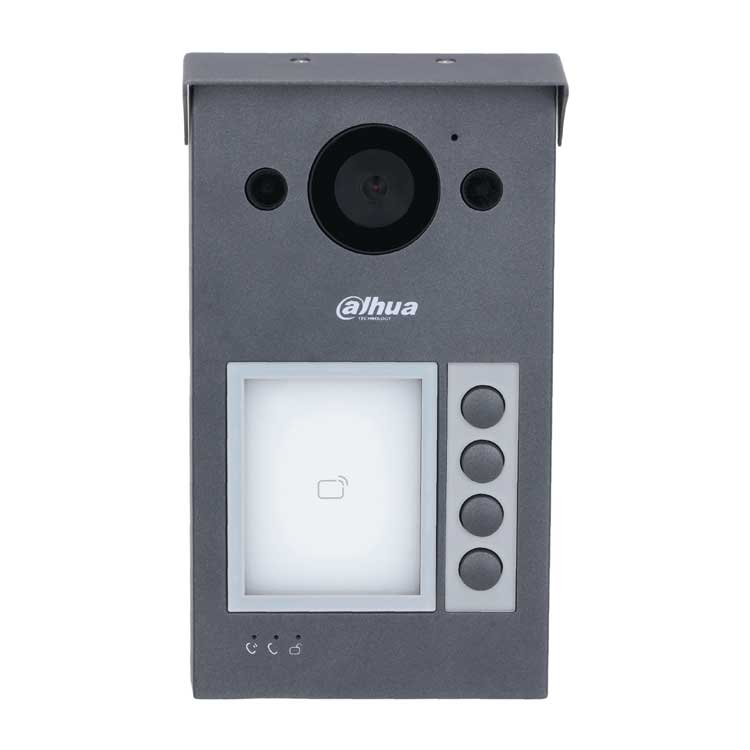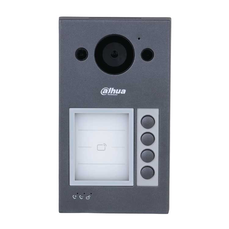 Вызывная WIFI панель с разрешением камеры 2мп и CMOS сенсором, угол обзора по горизонтали 125°, алюминевый сплав, уровень защиты IP65, IK08. Поддержка режима "Ночь" и голосового оповещения. Групповые вызовы. С четырьмя кнопками. Видео и аудио сообщения. Удаленный доступ через мобильное приложение DMSS. Установка на стену. Питание: DC 12V, PoE(802.3af)