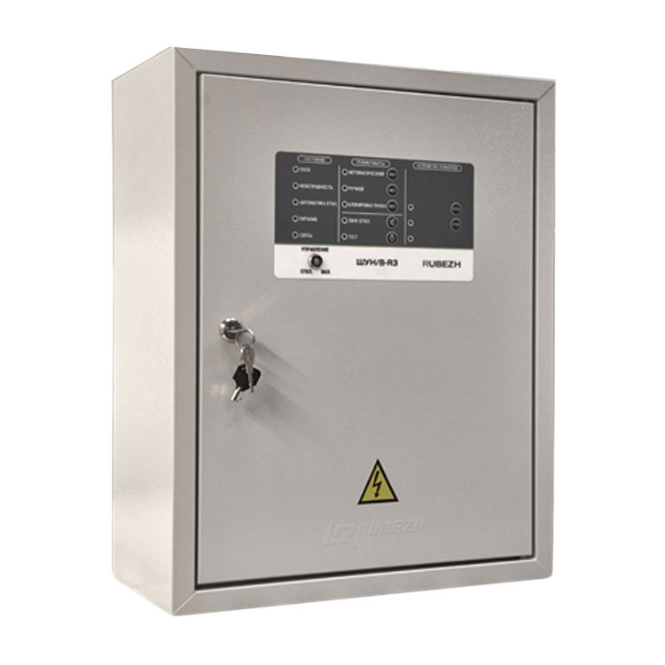 Шкаф управления пожарный ШУН/В прот.R3 предназначен для управления электродвигателями дренажного насоса, жокей-насоса, насоса пожаротушения и вентилятора приточно-вытяжной вентиляции или вентилятора дымоудаления в адресных системах под управлением приемно-контрольного прибора «Рубеж-2ОП» прот.R3 или автономно.