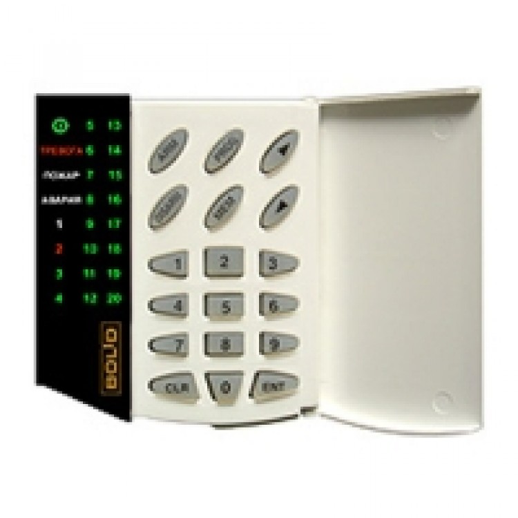 Пульт и клавиатура со светодиодными индикаторами на 20 охранных или пожарных зон.