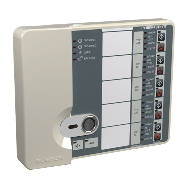 Пульт дистанционного управления «Рубеж-ПДУ-ПТ» (далее ПДУ-ПТ) предназначен для дистанционного управления режимами работы многозонной (до 5 зон) системой пожаротушения, подключенной в АЛС одного или нескольких приемно-контрольных приборов: «Рубеж-4А», «Рубеж-2ОП».