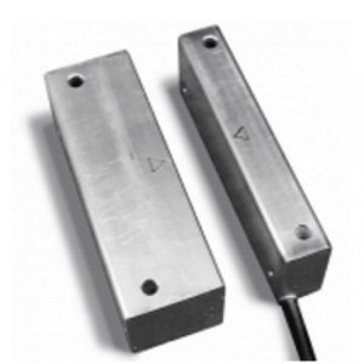 Магнитоконтактный для металлических поверхностей; контакты переключаются при тревоге, 35 мм (контакты замкнуты), 85 мм (контакты разомкнуты); U-коммут.72 В, I-коммут.500 мА, P-коммут.10 Вт; IP68, t-раб.-50…+50°С, 90х40х20 мм (геркон), 90х40х40 (магнит). Кабель ПВС 3х0.75 1000 мм (металлорукав). Корпус из нержавеющей стали