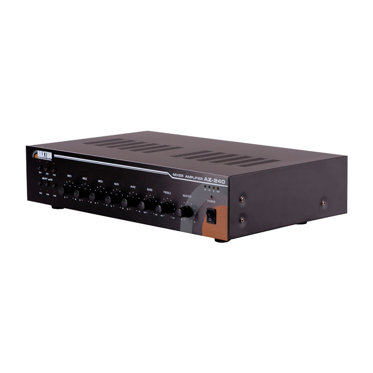 Зональный усилитель ROXTON AZ-240 мощностью 240 Вт это решение начального уровня для построения распределённых систем речевого оповещения и музыкальной трансляции. В первую очередь он предназначен для озвучивания помещений, разбитых на несколько зон оповещения. Два линейных и четыре микрофонных аудиовхода на задней панели дают широкий выбор источников аудиосигнала, а дополнительные низкоомные аудиовыходы позволяют подключать к усилителю акустические системы бытового и профессионального уровней. Отдельно стоит отметить встроенный селектор зон, коммутирующий высоковольтные выходы усилителя с шестью линиями громкоговорителей. Это даёт возможность выбора, в какие зоны транслировать один аудиосигнал. Помимо этого, ROXTON AZ-240 оборудован регуляторами громкости и тембра выходного аудиосигнала, что позволяет получать требуемую выразительность и громкость звучания транслируемой музыки и речи. Сочетание только необходимых функций, простоты использования и компактного размера сделали ROXTON AZ-240 незаменимым при озвучивании кафе, баров, ресторанов, административных и офисных помещений.