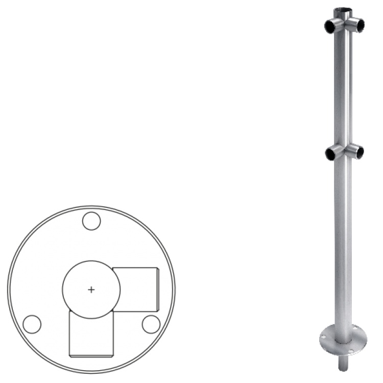 Стойка ограждения съемная L-образная, 4 муфты угол 90° с гнездом