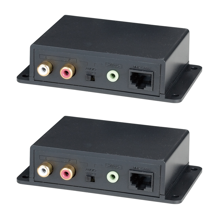 AE02 Комплект для передачи стерео аудиосигнала на расстояние до 600 м по кабелю витой пары CAT5 и выше. Встроенный изолятор. Два приёмопередатчика: 2хRCA, 3,5 мм мини аудио разъём, переключатель разъёмов аудио, 1хRJ-45. Не требует питания. Размеры каждого устройства (ШxВxГ): 108x27x70мм. Рабочая температура -40...+55°C.