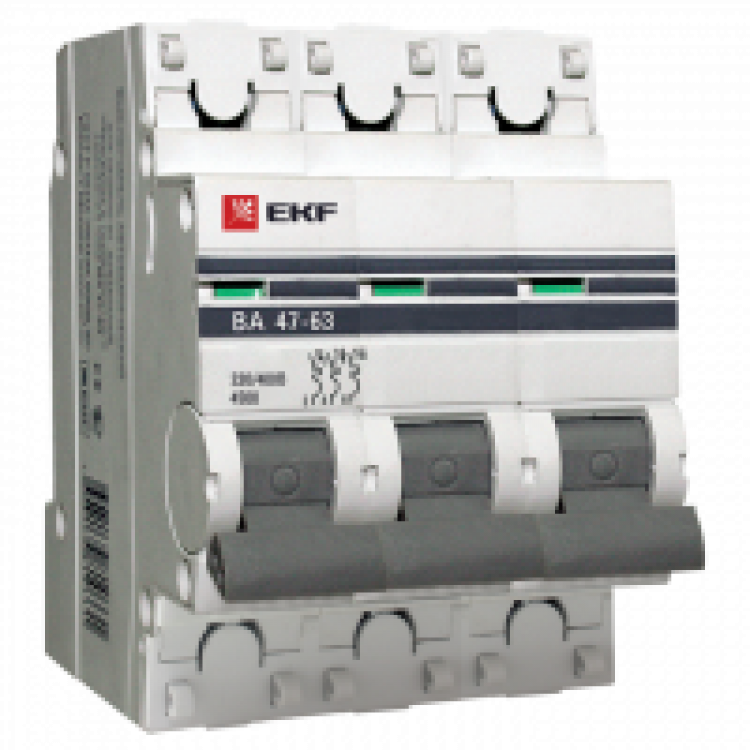 Автоматические выключатели ВА 47-63 4,5 кА EKF PROxima являются механическими коммутационными аппаратами, производятся в одно-, двух-, трех- и четырехполюсном исполнениях и соответствуют ГОСТ Р50345-2010. Особенностью данной серии выключателей является усовершенствованная конструкция. В выключателях имеются пластиковые крышки, закрывающие доступ к винтовому зажиму и служащие для опломбирования выключателей, что исключает несанкционированный доступ к проводникам. Корпус выключателей усилен дополнительными заклепками для устранения эффекта расхождения корпуса. Выключатели оборудованы удобной ручкой управления, обеспечивающей надежное оперирование изделиями. На лицевой панели выключателей имеется цветовой индикатор состояния. Конструкция установочного зажима обеспечивает свободную установку выключателя на DIN-рейку.