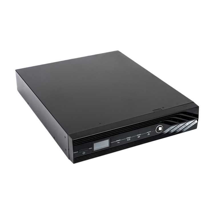 220 В, 1000 ВА (900 Вт) On-Line, синусоидальная форма выходного напряжения, световая и звуковая индикация режимов работы, ЖК дисплей. Встроенные АКБ 9 Ач, 2 шт, время резерва 3 мин. Дистанционный мониторинг по RS 232, USB, порт для платы релейного интерфейса. Возможность подключения SNMP-модуля DL 801. Функция удаленного аварийного отключения выходного напряжения (EPO). Корпус под 19" шкаф, высота 2U или настольная установка.