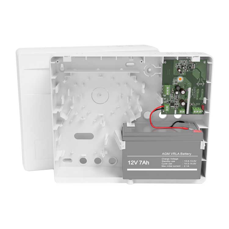 U-вых.12 В, I-вых.2.5 А, U-вх.190…245 В; под АКБ 12 В/ 7 Ач; выход наличия сети, тампер; защита от КЗ, защита АКБ; t-раб.-30...+35°С; 80.5х103х52 мм