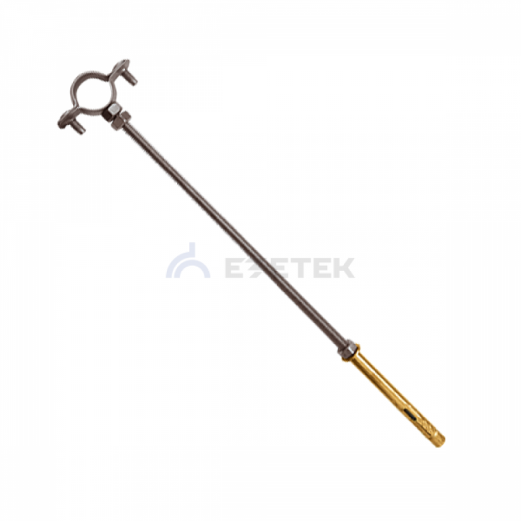 Держатель фиксирует молниеприемник диаметром 16 мм на бетонном фасаде зданий. Изделие имеет анкерную шпильку с резьбой М8 длиной 330 мм для крепления на фасаде.