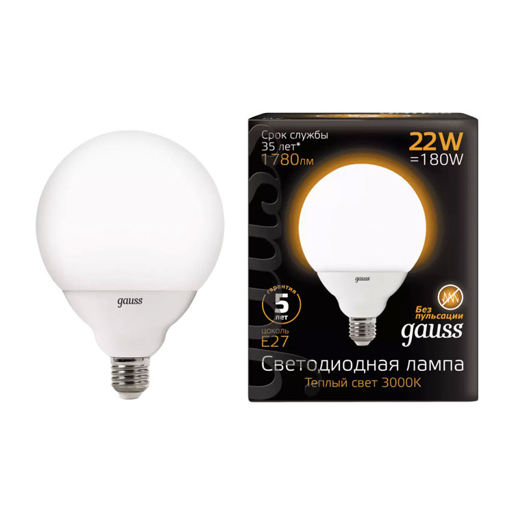Gauss 105102122 Лампа Gauss G125 22W 1800lm 3000K E27 LED
