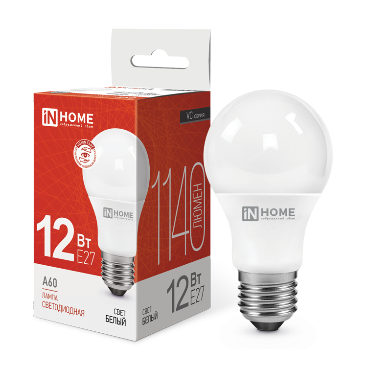 IN HOME 4690612020242 Лампа светод. груша 12Вт Е27 4000К