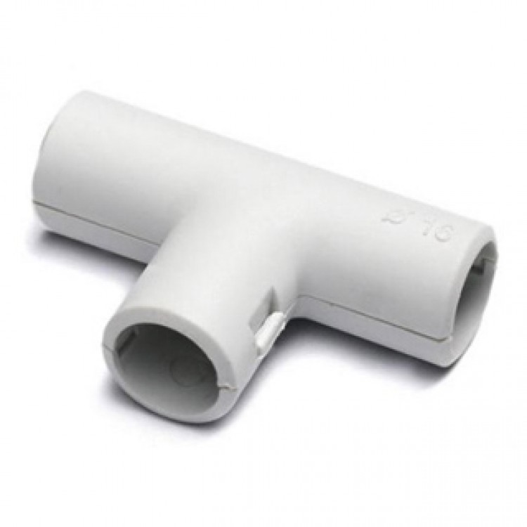 \nТройник разборный предназначен для Т-образного соединения трёх жестких или гофрированных труб в местах разветвления магистральной трассы, рекомендуется для использования в сухих помещениях.