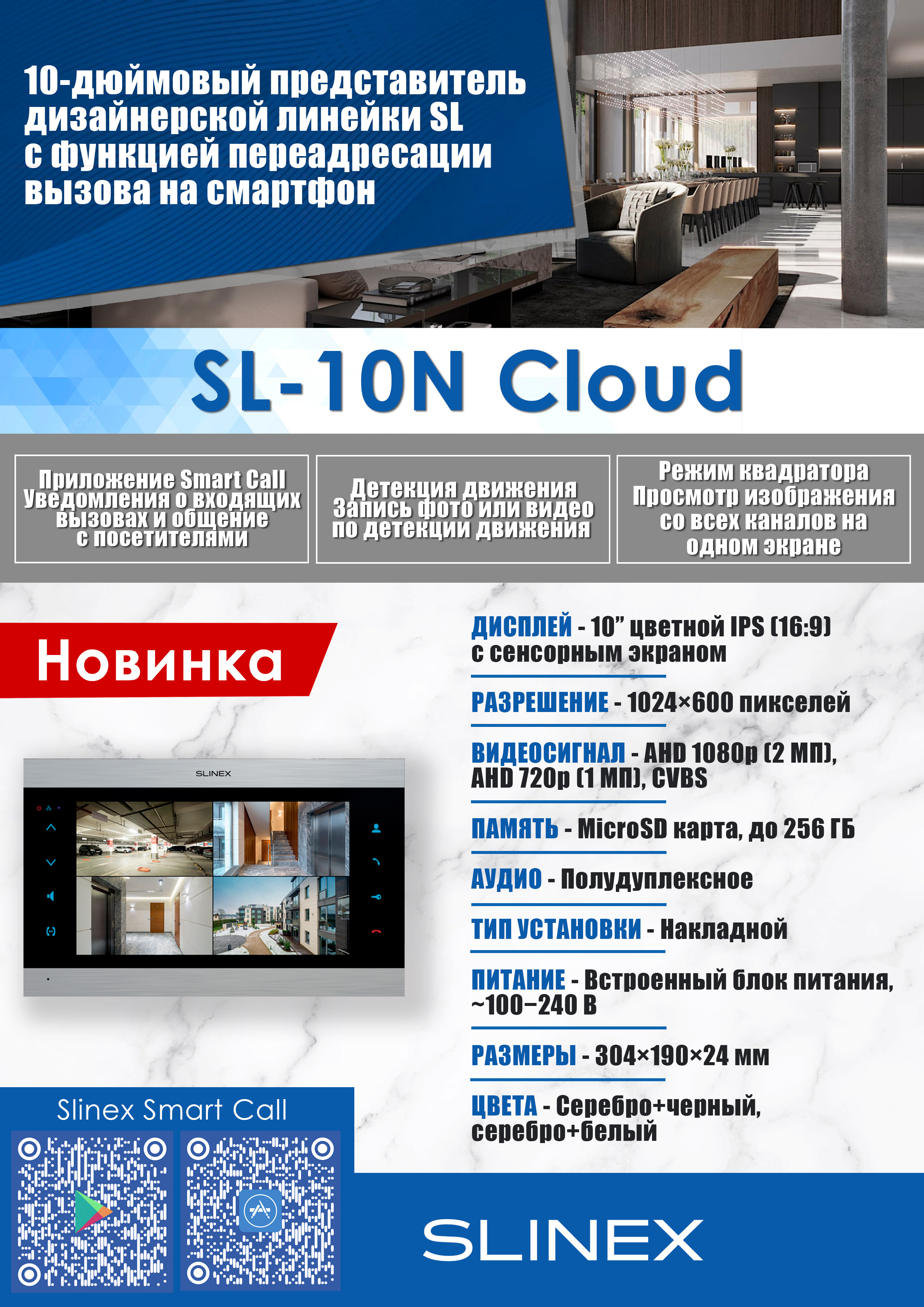 Новинка! Дизайнерский 10" домофон Slinex SL-10N Cloud с переадресацией на смартфон