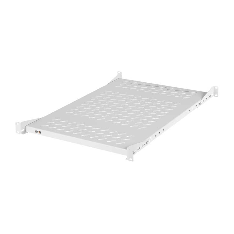 Усиленная стационарная полка предназначена для установки или поддержки тяжелого оборудования в напольных телекоммуникационных шкафах и стойках. Снизу полка укреплена продольными и поперечными усиливающими ребра. Поверхность полки имеет перфорацию для лучшей вентиляции оборудования. Крепление осуществляется на двух парах 19" направляющих в четырех точках. Полка устанавливается в напольные шкафы и стойки в соответствии с таблицей совместимости аксессуаров.