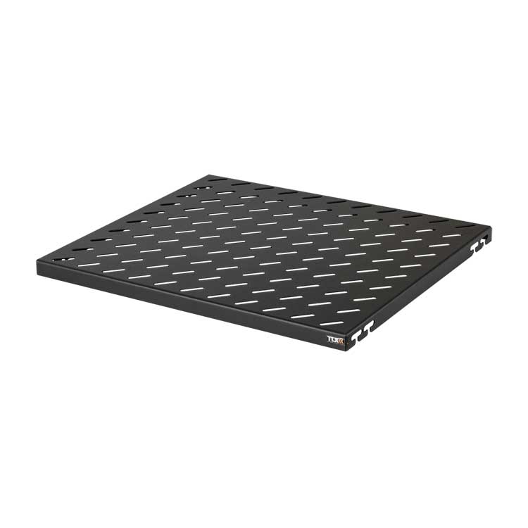 Стационарная полка увеличенной ширины предназначена для установки и поддержки тяжелого оборудования. Полка устанавливается в напольные шкафы серии TFA, TFM, TFI-R и настенные шкафы TWI-R, TWC-R в соответствии с разделом совместимости аксессуаров. Поверхность полки имеет перфорацию для лучшей вентиляции оборудования. Крепление осуществляется на двух парах 19" направляющих в четырех точках по боковым сторонам полки.