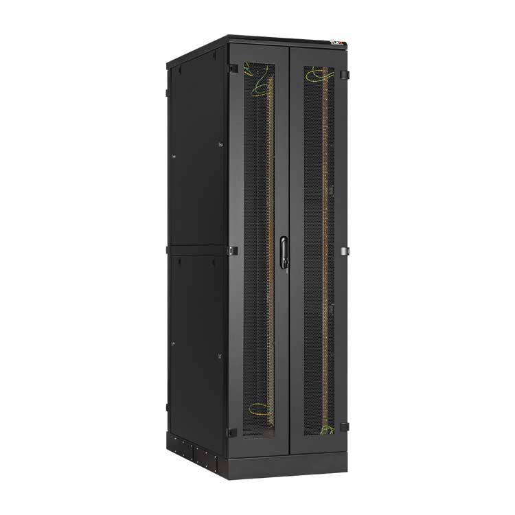 TFA-426012-WHWH-BK Напольный шкаф 19", 42U, двухстворчатые перфорированные двери, двухуровневые стенки Ш600хВ2060хГ1200мм, в разобранном виде, черный