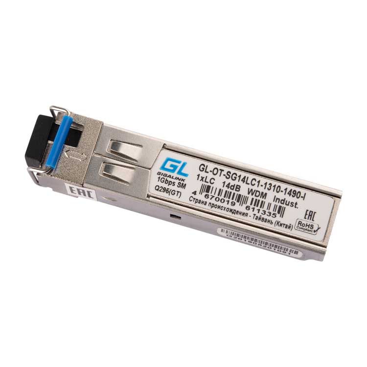 Модуль SFP, 1.25 Гбит/с, WDM, 1 ОВ, SM, 1xLC, Tx:1310/Rx:1490 нм, DDM, 14 дБ (до 20 км), -40 +85 °С